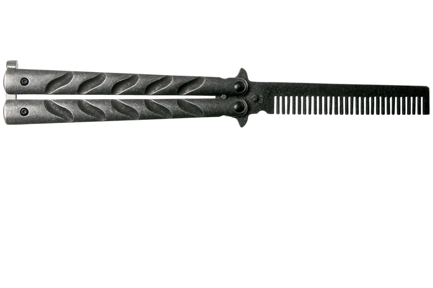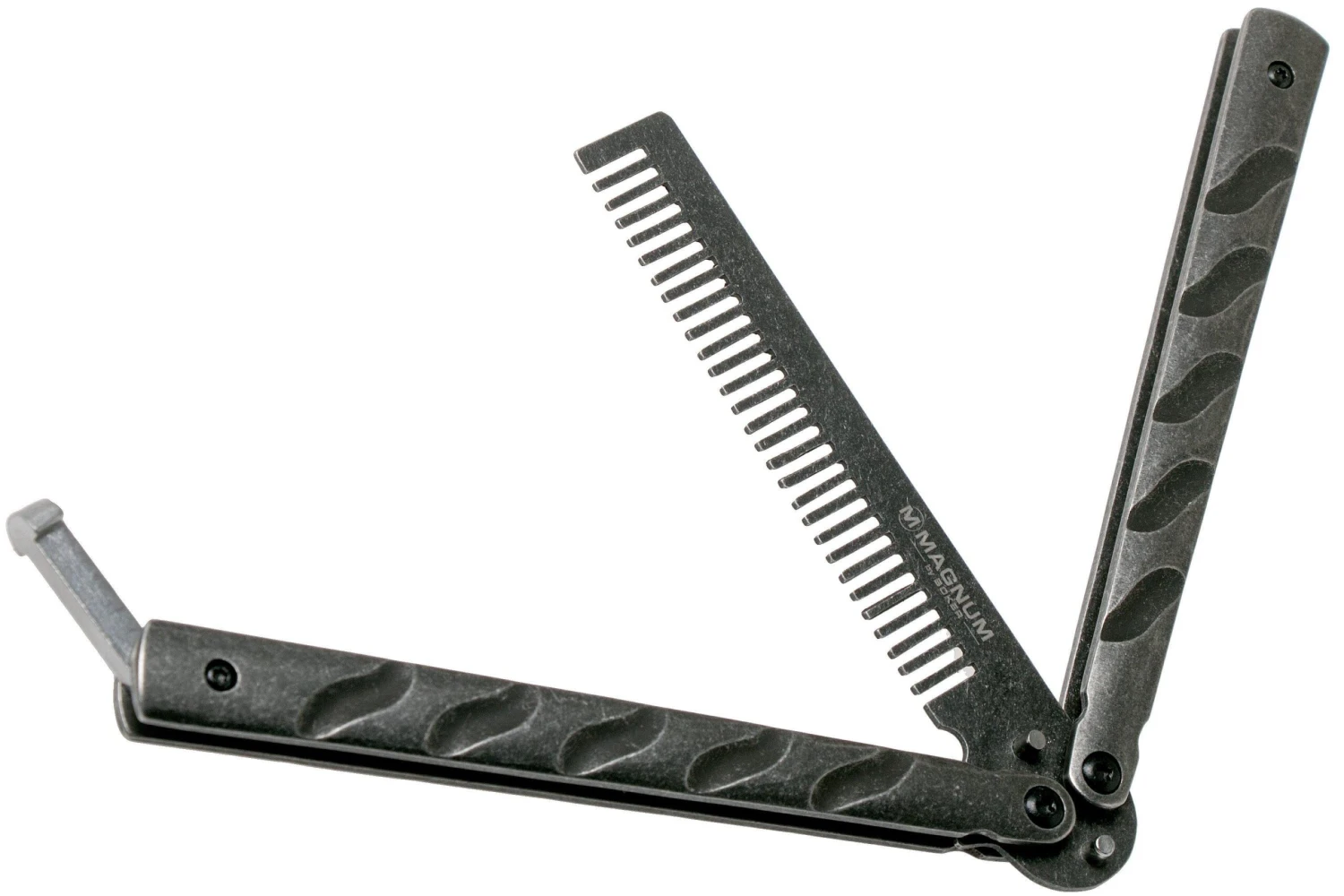 El Böker Magnum Balicomb 09MB252 es un peine plegable, basado en un balisong. El balisong a veces se denomina también cuchillo mariposa. En lugar de una hoja, y por lo tanto de un cuchillo, el Balicomb está mejorado con un peine. Así que un «peine mariposa». Como tal, el Balicomb es legal de poseer, llevar y usar. El regalo perfecto para cualquier persona con barba, o una práctica versión de entrenamiento para sustituir un balisong real.