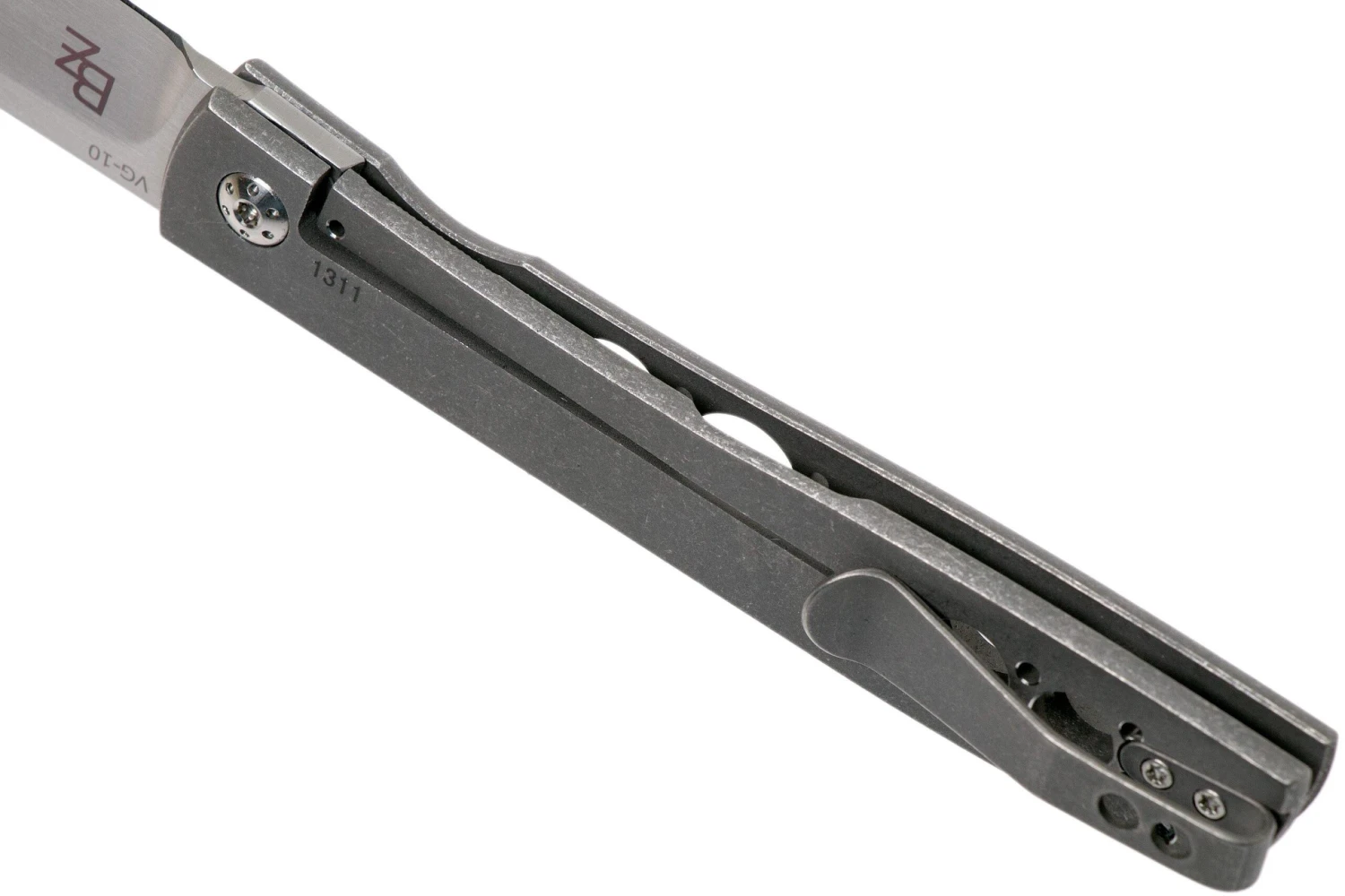 La Böker Plus Urban Trapper 42 es una navaja muy fina y elegante, diseñada por Brad Zinker. Debido a su pequeño tamaño y a la estructura de titanio, este cuchillo no pesa casi nada. En comparación con las otras versiones de la Urban Trapper, esta navaja no se puede abrir con una sola mano. Cuando se abre, la hoja queda bloqueada por el framelock.