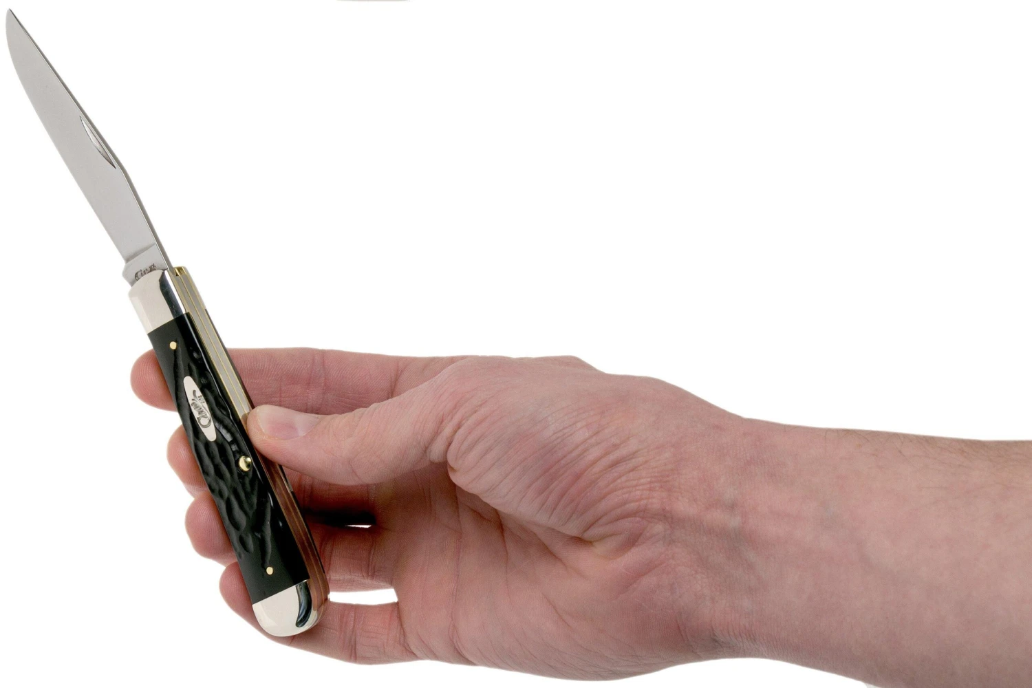 La Case Trapper es una navaja tradicional con la clásica forma de Trapper. Este es un patrón que tiene su origen entre los cazadores y los furtivos. Esta versión especial tiene dos hojas: una clásica clippoint y una tradicional speypoint. Ambas hojas pueden utilizarse para destripar la caza capturada. Cuando se abren, se mantienen en su sitio gracias a un slipjoint.