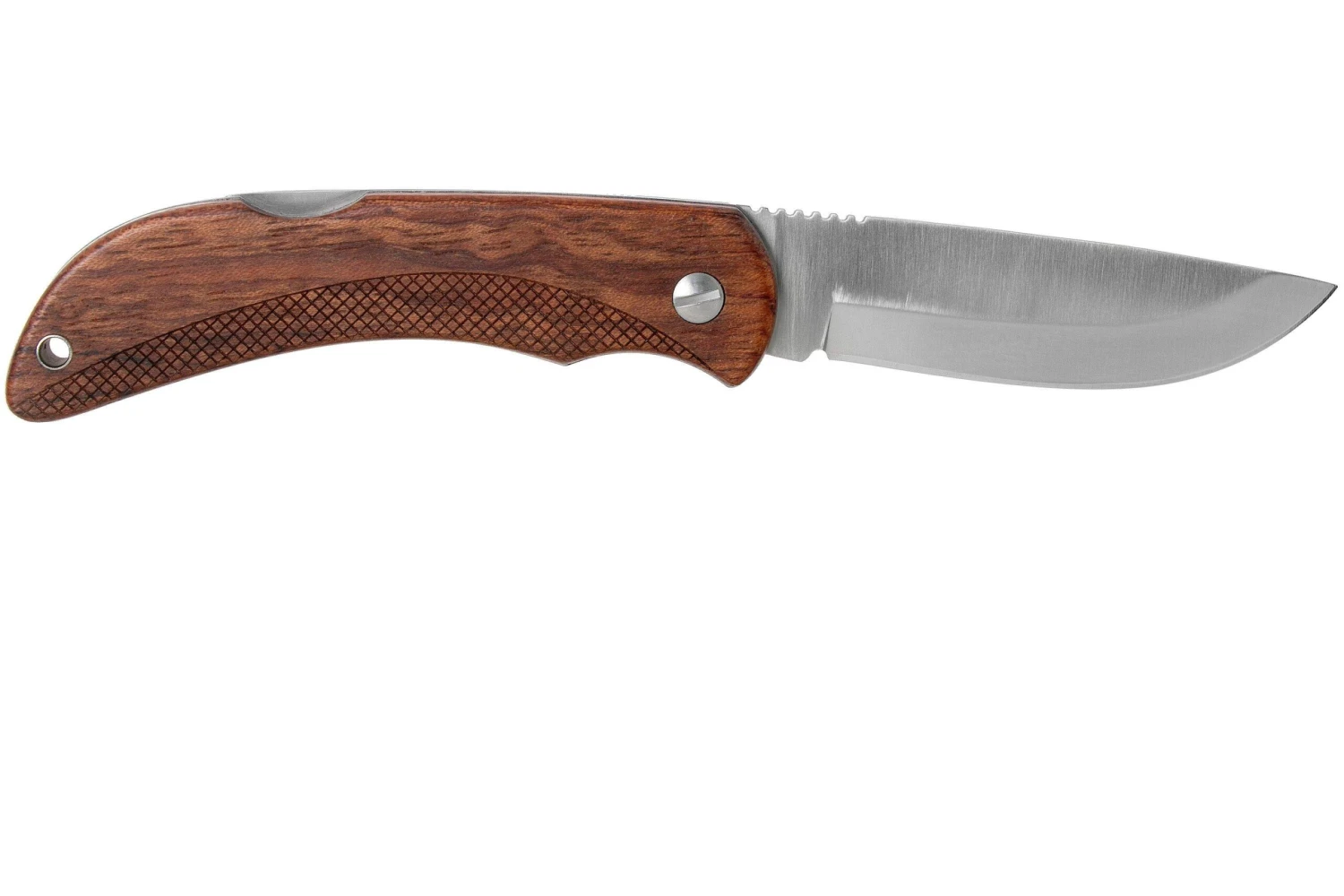 La EKA Swede 10 es muy polivalente y es ideal para uso en exteriores. El cierre trasero y la hoja de acero Sandvik 12C27 de primera calidad ofrecen la solidez y la fiabilidad que se espera de un cuchillo de este tipo. La hoja está dotada de prácticas ranuras para proporcionar un buen control. No es muy sofisticada, pero es perfecta para el uso diario. La hoja no se puede abrir con una sola mano, por lo que también se puede utilizar en países donde la legislación lo prohíbe. Y en la práctica esto no supone una desventaja.
