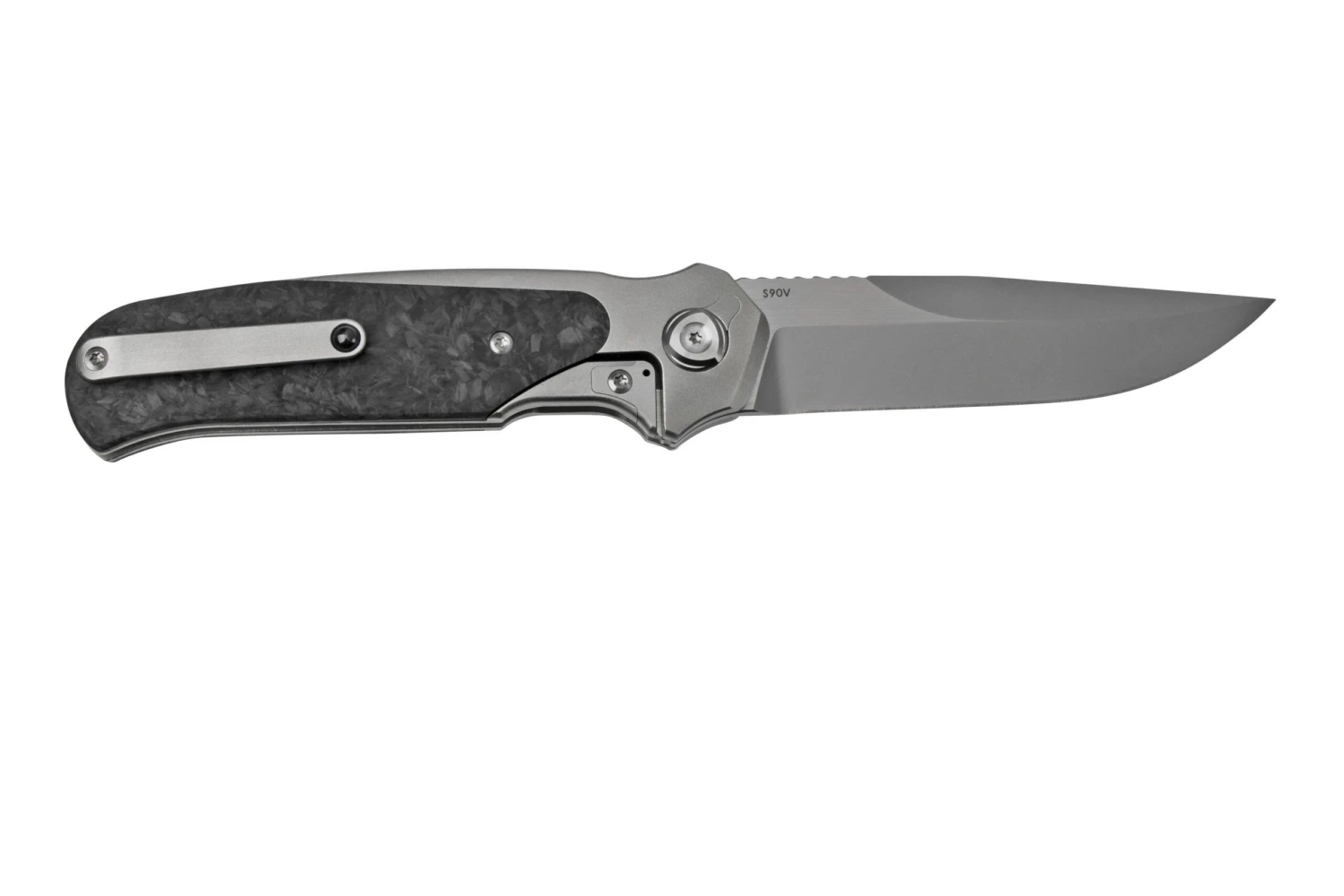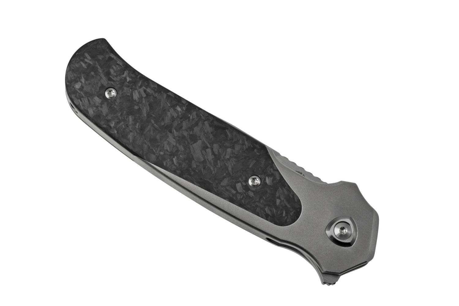 La Liong Mah Modelo 18 es una navaja EDC fresca genial y elegante. Casi se podría decir que es un cuchillo de caballero. Las bonitas líneas y el excelente acabado convierten al Warrior en un cuchillo de increíble calidad. Tanto si pelas una manzana a diario como si abres un par de cartas o la utilizas para cortar cajas en trozos: el modelo 18 puede hacerlo todo. Puedes abrir rápidamente el modelo 18 con el flipper. Los cojinetes de bolas garantizan que la hoja salga disparada del mango. Una vez abierta, un sólido cierre de marco garantiza la seguridad de los dedos. La forma en que Mah deja caer la barra de bloqueo detrás del mango etá muy bien hecho. Visualmente agradable. El mango está hecho de titanio y fibra de carbono. Hace que el cuchillo parezca un poco más especial. El pivote personalizado también es un gran detalle. La hoja está hecha de acero CPM S90V. Se trata de un tipo de acero fantástico que conserva bien su afilado. Uno de los mejores tipos de acero de la historia. En definitiva, la Liong Mah Modelo 18 es una excelente navaja. Tanto si llevas un traje sastre como un mono: el Modelo 18 te ayudará.
