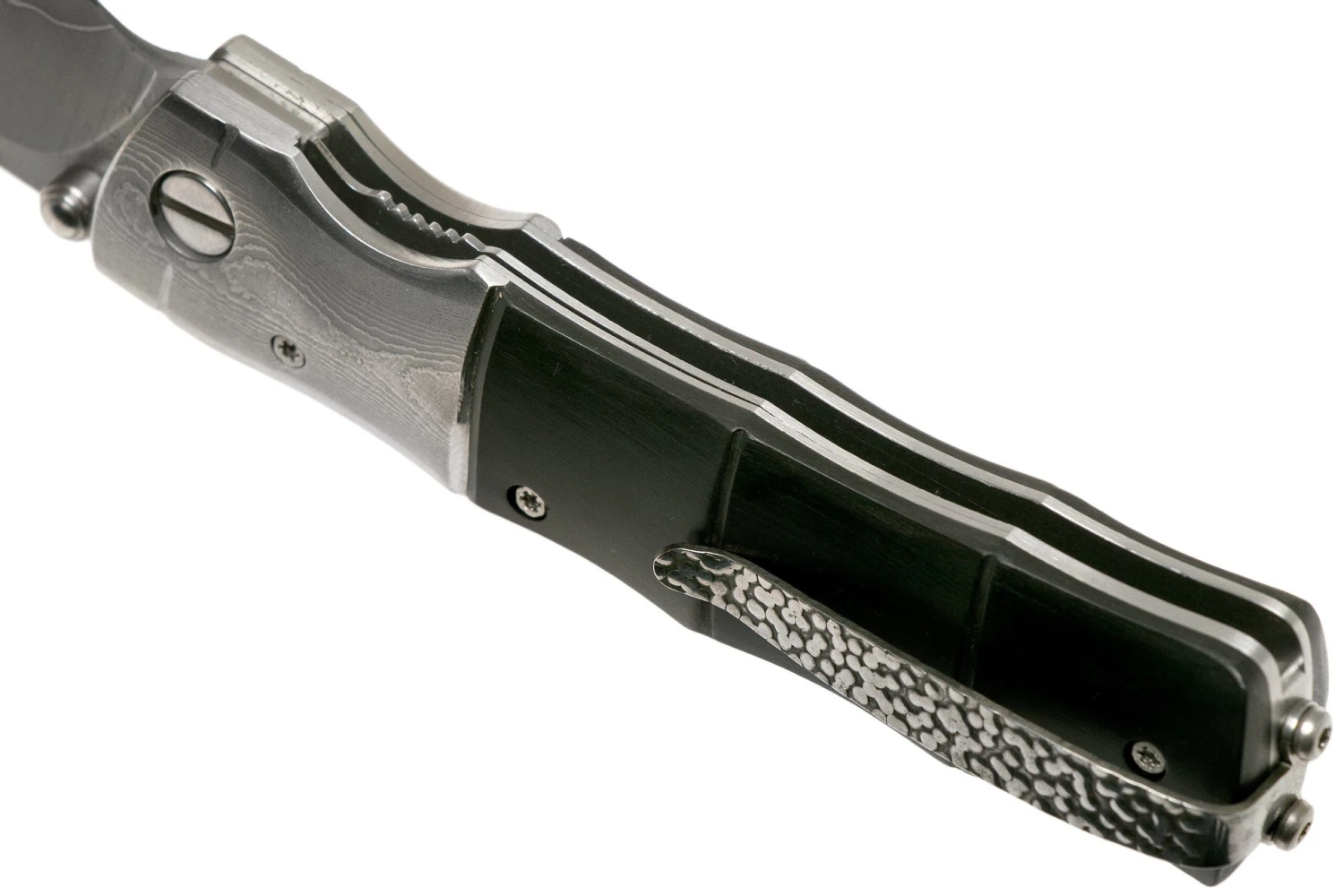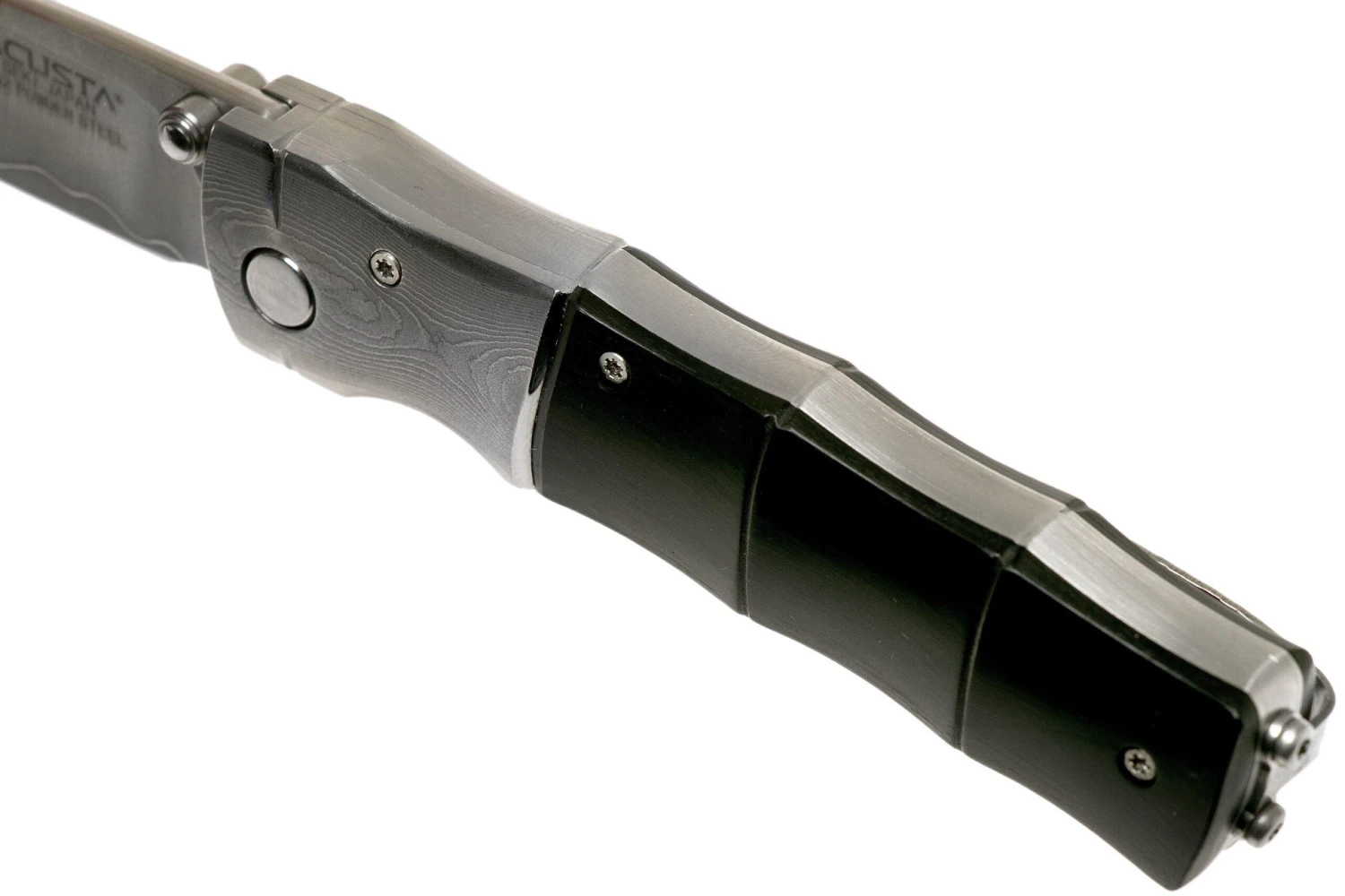 El Mcusta MC-145G Shinra Mixture Bamboo, madera de pakka negra es un elegante cuchillo de caballero japonés. El mango está hecho de una impresionante madera de pakka negra. Este cuchillo está mejorado con lo que Mcusta llama un patrón de bambú. Esto significa, literalmente, que el mango tiene la forma de un trozo de bambú. No solo tiene un gran aspecto, sino que también ofrece suficiente agarre. El conjunto se complementa con impresionantes cabezales de acero de damasco. La transición de los cabezales de madera a los de acero se llevó a cabo perfectamente. Apenas se siente un borde cuando se mueve el dedo sobre él. El lomo de la hoja está bien redondeado y la hoja se mueve suavemente. Cuando se abre, la hoja se bloquea mediante un linerlock.