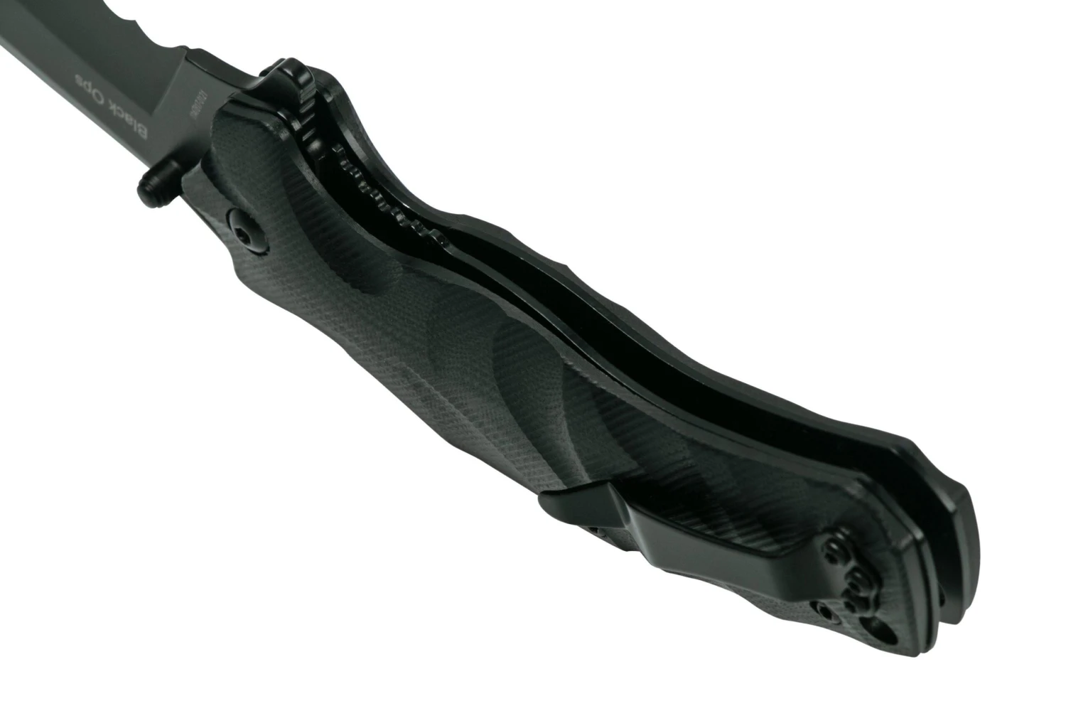 La Smith & Wesson Black Ops Recurve Assisted es una sólida navaja táctica por un precio asequible. El cuchillo se abre a la velocidad del rayo con el flipper o con el perno de pulgar de dos caras. La apertura asistida abre el cuchillo en un movimiento rápido. Un sólido bloqueo liner lock sujeta la hoja para evitar que se cierre accidentalmente durante su uso.